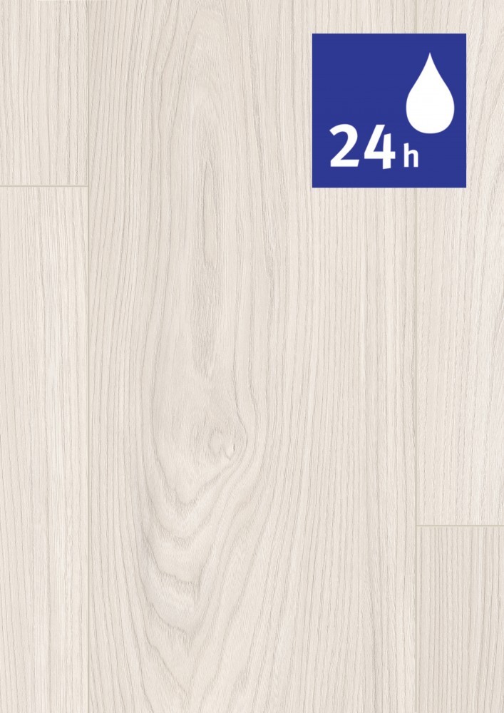 Podlaha v dekore Akácia Sheffield biela v svetlej farbe pôsobí ľahko a moderne. Tento nadčasový dekor vytvorí pekné kombinácie s neutrálnymi farbami, bielou, kontrastnými farbami alebo dokonca aj s čiernou. Podlahové dosky vo formáte Classic zvýraznia celkový dojem z priestoru. 4- stranné priznané drážky po celom obvode zvýrazňujú vzhľad jednotlivých podlahových dosiek.