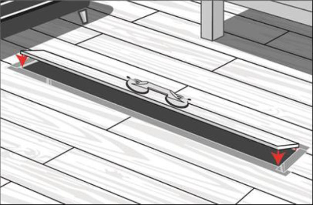 Poškodená podlahová doska je teraz odomknutá na oboch koncoch.
