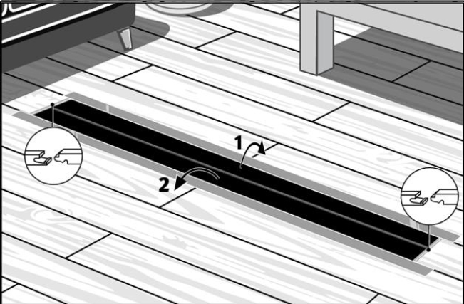 Odstráňte podlahovú dosku- opatrne nadvihnite 4 odrezané diely dosky v uvedenom poradí (viď. obrázok) a vyklopte ju pod uhlom.