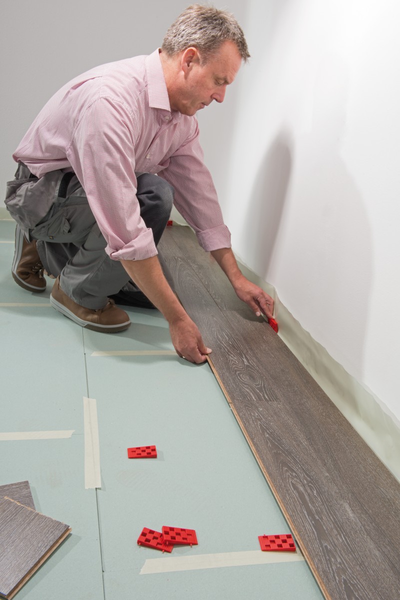 Dilatačné kliny predstavujú výbornú pomôcku pre vytvorenie správnej šírky dilatačných medzier. Používajú sa pri kladení plávajúcich podláh a umiestňujú sa medzi podlahu a stenu. Pri ukladaní prvého radu podlahových panelov vložte medzi stenu a podlahu dištančné kliny vo vzdialenosti približne 50 cm od seba. Nechajte ich na rovnakom mieste, pokiaľ nepoložíte posledný rad, aby sa vám počas práce podlaha neposúvala. Kliny pevne fixujú dilatačnú medzeru a tiež prvé rady montovanej podlahy. Po skončení montáže sa dajú ľahko odstrániť.