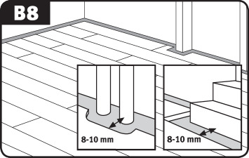Ako sme už v úvode spomenuli, pri pokládke podlahy plávajúcim spôsobom je nutné vytvoriť dilatačné medzery. Vytvárajú sa po celom obvode miestnosti medzi všetkými stenami a podlahou. Tento voľný priestor umožní pohyb plávajúcej podlahy v prípade zmien interiérovej klímy.