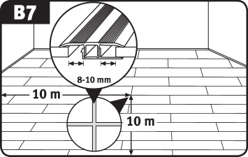 V prípade, že pokladáte plávajúcu podlahu EGGER v miestnosti, ktorá je väčšia ako 10 x 10 m, je nutné v určitom mieste pokládku prerušiť a vytvoriť dilatačnú špáru, ktorá sa následne prekryje prechodovou lištou.