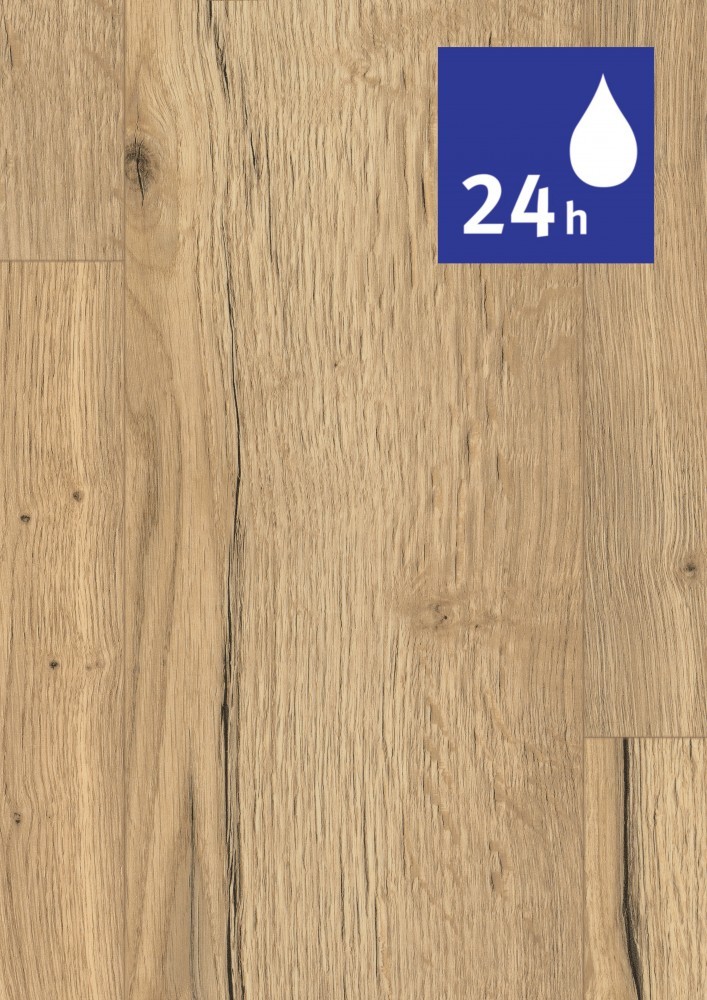 24 hodín vodeodolná hybridná podlaha AquaDura je dokonale premyslená - od jedinečného ultra matného povrchu až po integrovanú podložku z recyklovaných prírodných vlákien kombinuje najnovšiu povrchovú technológiu, ľahkú inštaláciu a atraktívny vzhľad v jedinečnej harmónii. Dodáva miestnostiam elegantný vzhľad olejovaného dreva, odpudzuje nečistoty a ľahko sa čistí. Vodotesný inštalačný systém Aqua Clic it! spoľahlivo chráni podlahu pred prenikaním vody po dobu 24 hodín. Podlaha je vyrobená z prírodných vlákien, 100 % bez PVC a zmäkčovadiel. Integrovaná podložka zaisťuje príjemný pocit pri chôdzi a státí a zároveň tlmí kročajový hluk. Podlaha v dekore Dub Halifax prírodný ponúka skutočne všestranné využitie. Dekor v prírodnom tóne s rustikálnymi kontrastmi pôsobí veľmi autenticky a hodí sa do každej miestnosti. Podlahové dosky vo formáte Classic zvýraznia celkový dojem z priestoru. 4- stranné priznané drážky po celom obvode zvýrazňujú vzhľad jednotlivých podlahových dosiek. Tento dekor je súčasťou konceptu Interior match. Je dekorovo zhodný s nábytkovým dekorom H1180 ST37 a H180 ST86 z Kolekcie dekoratívnych materiálov EGGER.