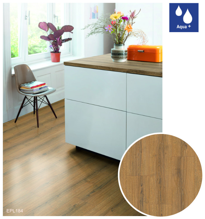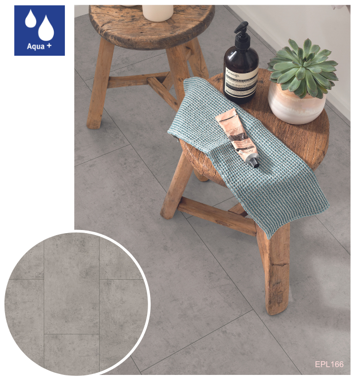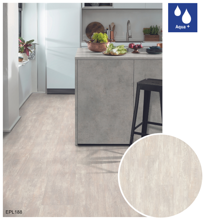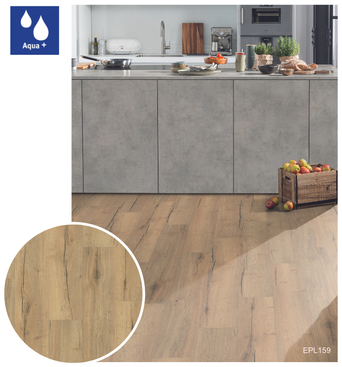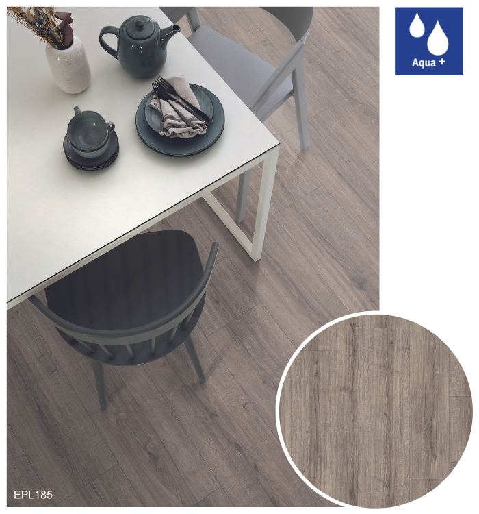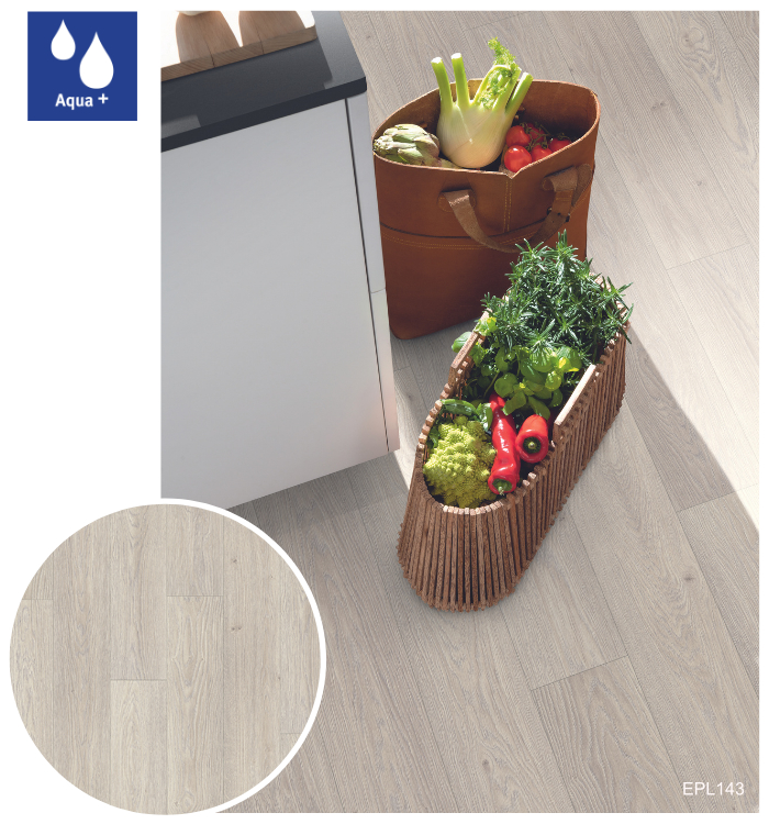 Vodoodolné laminátové podlahy Aqua+ sú dostupné v 34 trendových dekoroch, vrátane realistických reprodukcií dreva, kameňa a mramoru so zameraním na najnovšie interiérové trendy. Tieto podlahy sa vyrábajú v hrúbke 8 mm v triede záťaže 32, čo ich predurčuje na použitie v obytných priestoroch s vysokým zaťažením, ako aj v komerčných priestoroch so strednou záťažou. Sú dostupné v 3 rôznych podlahových formátoch: Classic, Large a Kingsize.