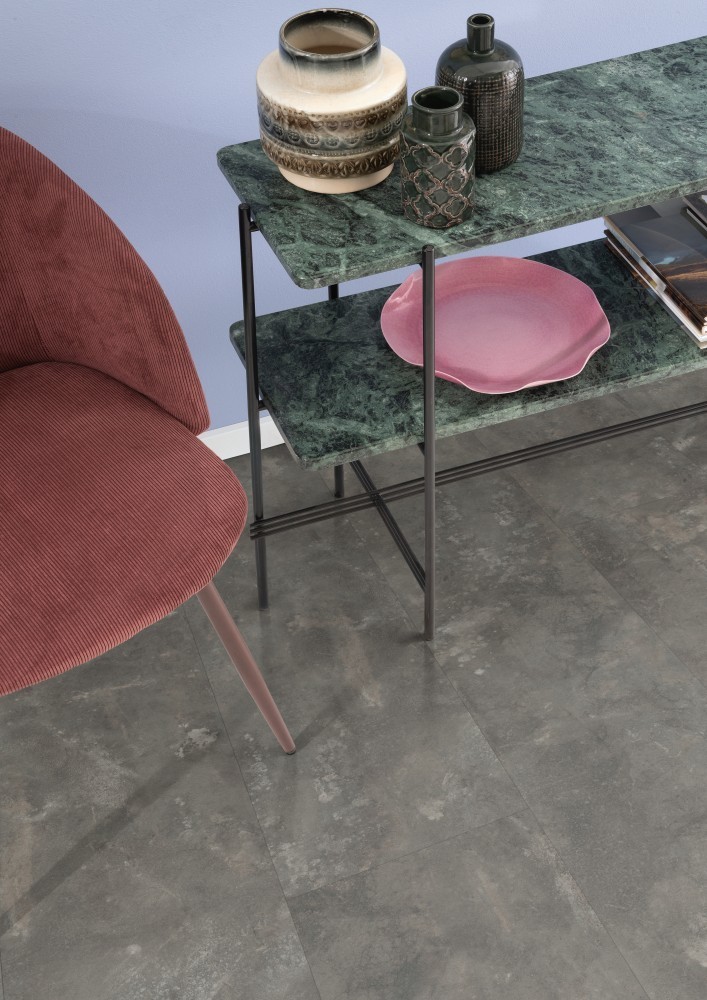 Dekor Metal Rock antracitový je obrazom dokonalého spojenia kameňa a kovového vzhľadu. Vďaka hnedastým farebným prvkom antracitu vytvára harmonický kontrast k drevu a teplým sivým odtieňom. Podlaha vo formáte Large zvýrazní celkový dojem z priestoru. 4V- drážka po celom obvode zvýrazňuje vzhľad jednotlivých podlahových dosiek. Podlaha má protišmykový povrch R10, čo zaručuje prvotriedny komfort a vyššiu bezpečnosť pri chôdzi. Tento dekor je súčasťou konceptu Interior match. Je dekorovo zhodný s nábytkovým dekorom F121 ST87 z Kolekcie dekoratívnych materiálov EGGER.
