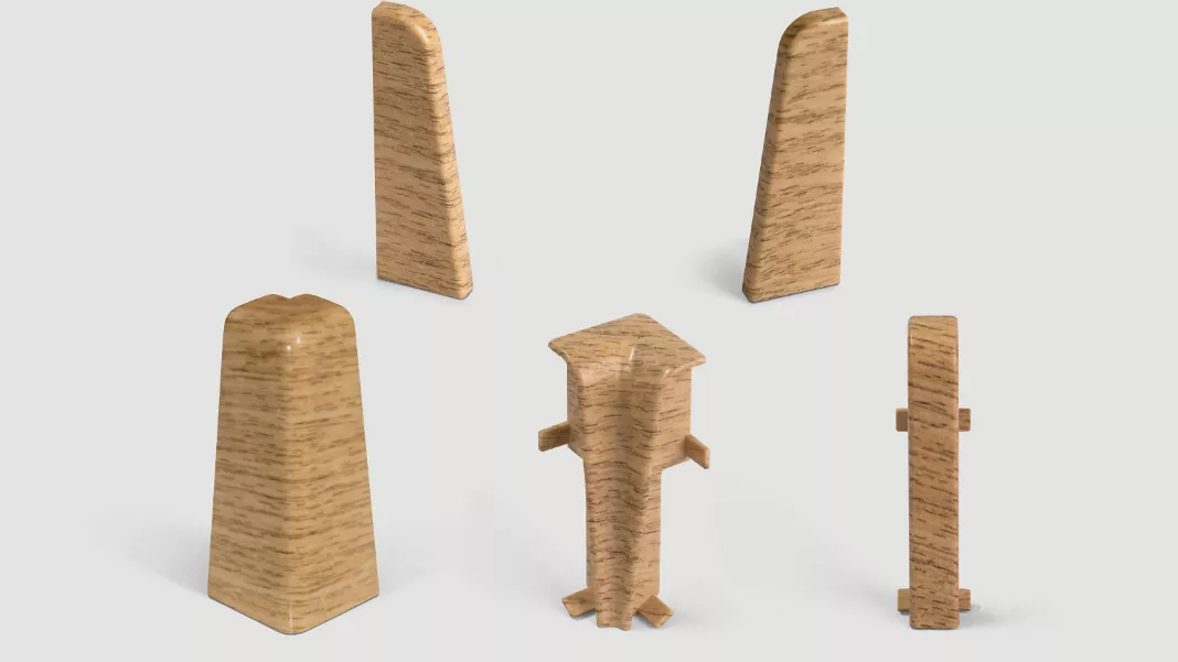 Plastové prvky ladiace s dekorom lišty umožňujú estetické zladenie s lištou. Používajú sa v prípade, ak nechcete soklové lišty zložito zarezávať, ako sme spomínali vyššie. Vďaka nim lišty do seba perfektne zapadnú. Okrem toho plnia tiež ochrannú funkciu- chránia rohy pred mechanickým poškodením ( napr. pri vysávaní) a zároveň chránia spoje líšt pred vnikaním vlhkosti. Sú dostupné v mnohých drevodekoroch a UNI farbách.