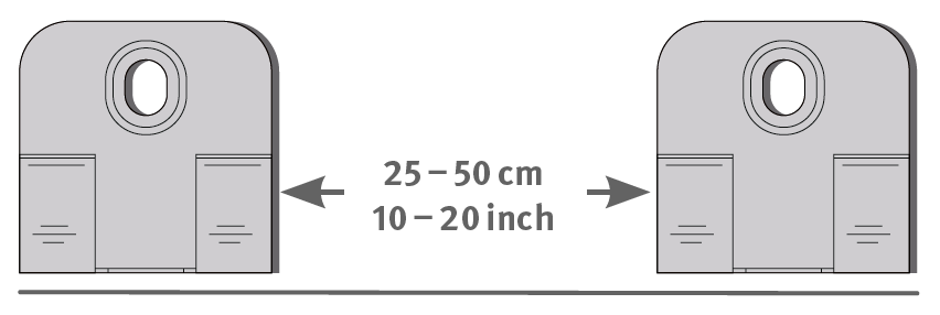 • Medzi úchytmi ponechajte vzdialenosť 25 - 50 cm v závislosti od stavu steny. V prípade nerovnej steny sa úchyty pripevňujú na priehlbené a nie na vypuklé body. Pri väčších nerovnostiach stien je možné počet úchytov zvýšiť podľa potreby.