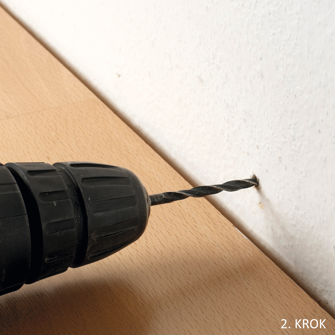 • Vysajte vyvŕtaný otvor a potom vložte dodanú hmoždinku