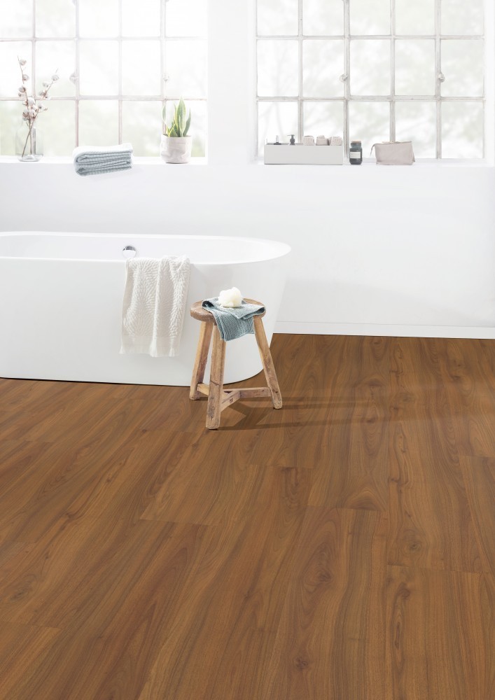 Orech Colden veľmi dobre imituje prírodnú orechovú kresbu dreva, ktorá spolu s typickou koňakovo hnedou farbou pôsobí silným moderným a luxusným dojmom. Výborne sa kombinuje so svetlými, ale aj s tmavšími farbami nábytku v interiéri. Podlaha vo formáte Large zvýrazní celkový dojem z priestoru. 4V- drážka po celom obvode zvýrazňuje vzhľad jednotlivých podlahových dosiek. Podlaha má protišmykový povrch R10, čo zaručuje prvotriedny komfort a vyššiu bezpečnosť pri chôdzi.