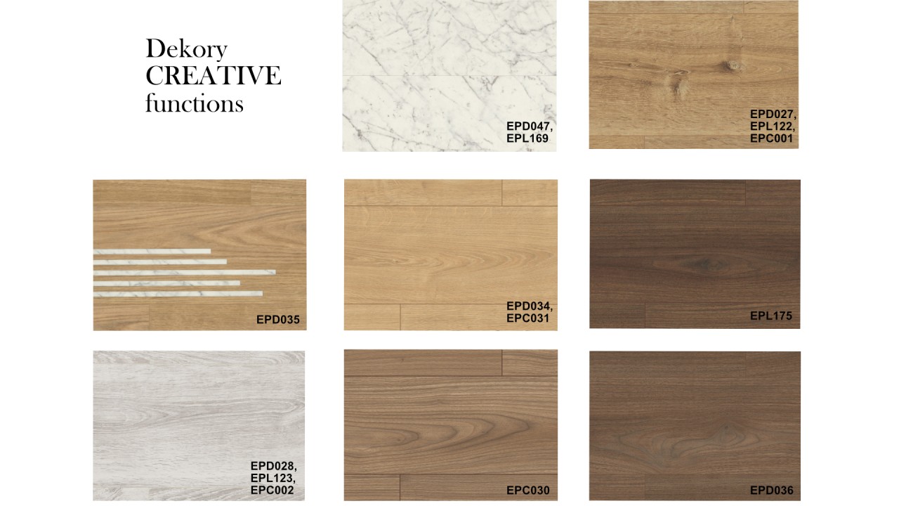 Priestor sa skladá a rozvíja prostredníctvom jednotlivých kontrastov, vysokokvalitných dekorov, harmonických tvarov a farieb. Vaše priania a potreby sú individuálne. Naše intovatívne koncepcie dizajnu majú za cieľ ich splniť. Oboznámte sa s našimi prémiovými podlahovými krytinami, ktorých kvalita a štýl sa dokonale snúbia s vašimi konceptmi a nápadmi. Aké dekory Trend selection využijete pre vytvorenie svojho vlastného štýlu?